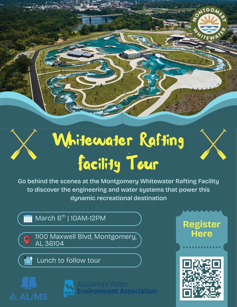 Join us in Montgomery for a behind-the-scenes tour of the Whitewater Rafting Facility, where engineered flow meets recreation. This facility tour will give attendees an inside look at the pumps, recirculation systems, and water control infrastructure that keep this dynamic destination running.