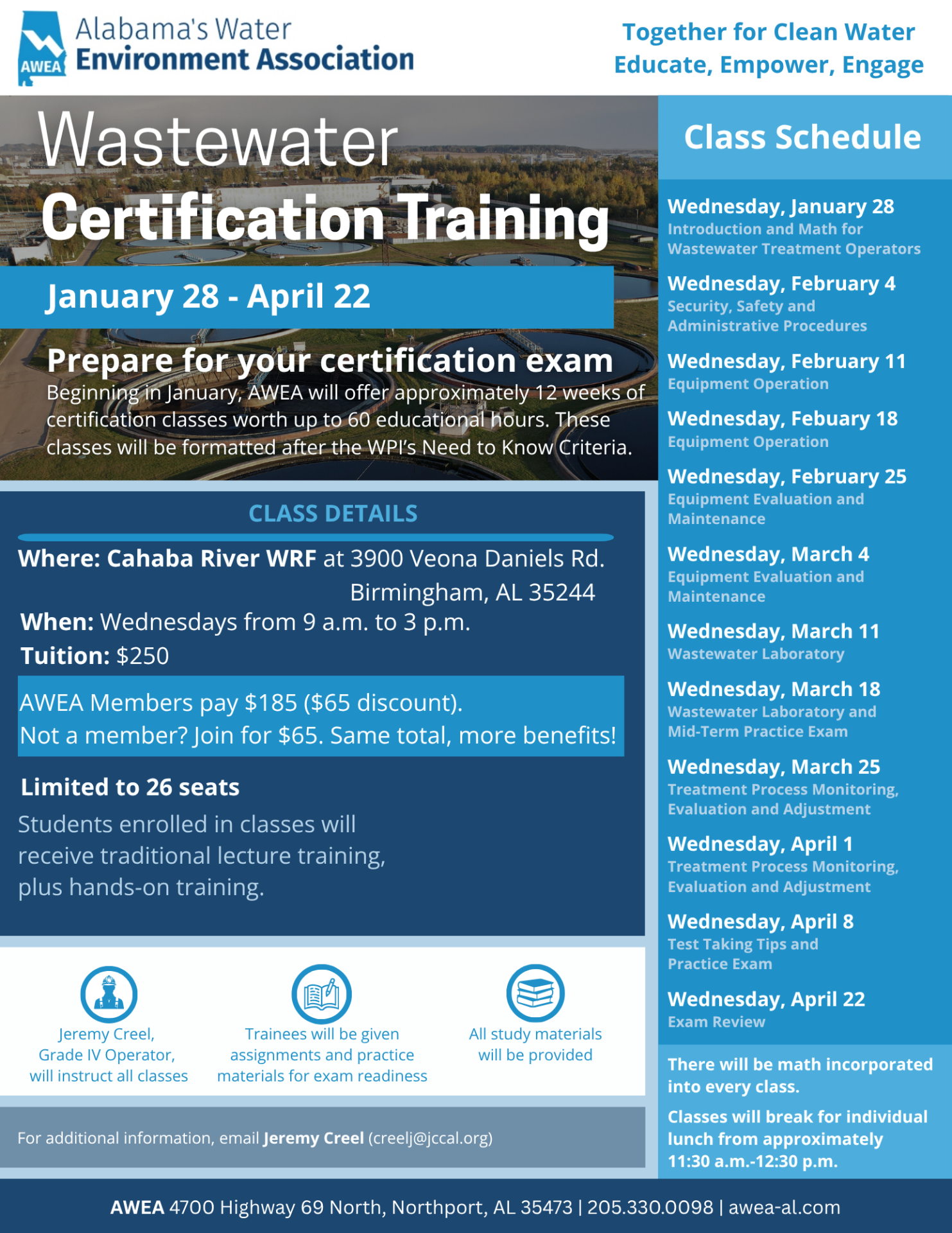 Plan to attend our Spring 2026 Semester of Wastewater Operator Certification Classes...